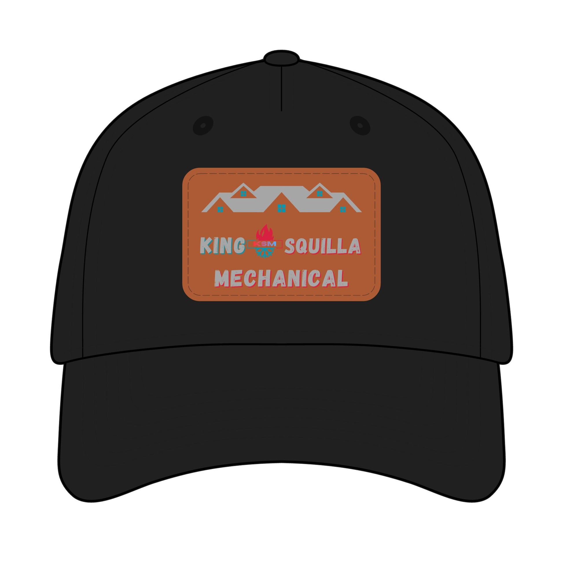 Leather Patch Baseball Cap — "King Squilla Mechanical" Outdoor Work Hat